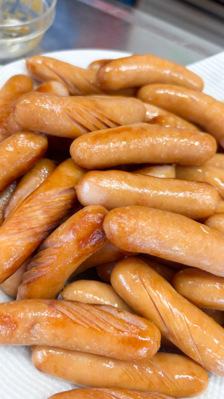 つけあわせのウインナー炒め、ゆで卵、秋野菜のさつまいも揚げ。