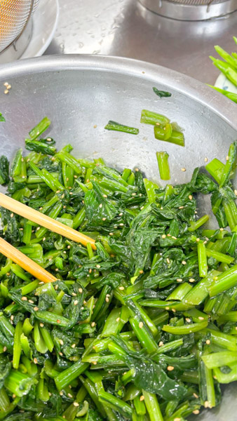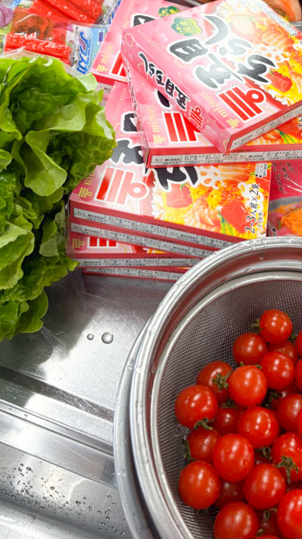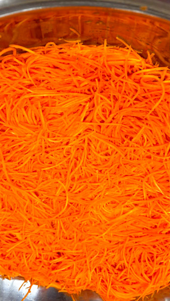 たくさんの人参や葉物などの野菜を下ごしらえ。